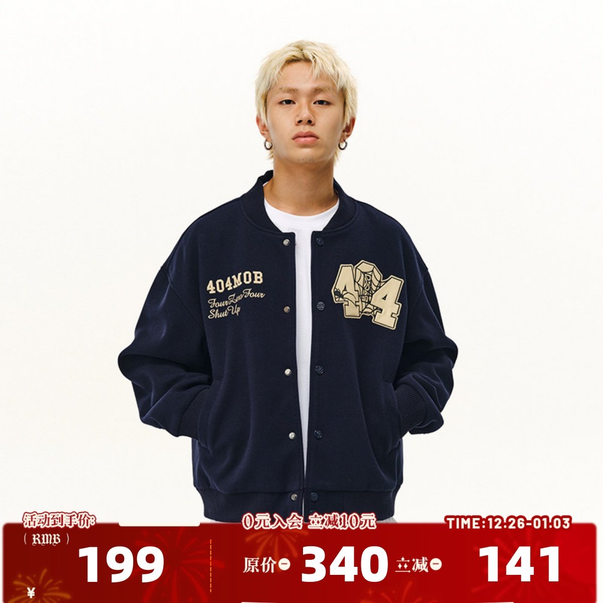 [侯明昊同款]404MOB重磅毛呢刺绣棒球服情侣外套男女美式秋冬夹克