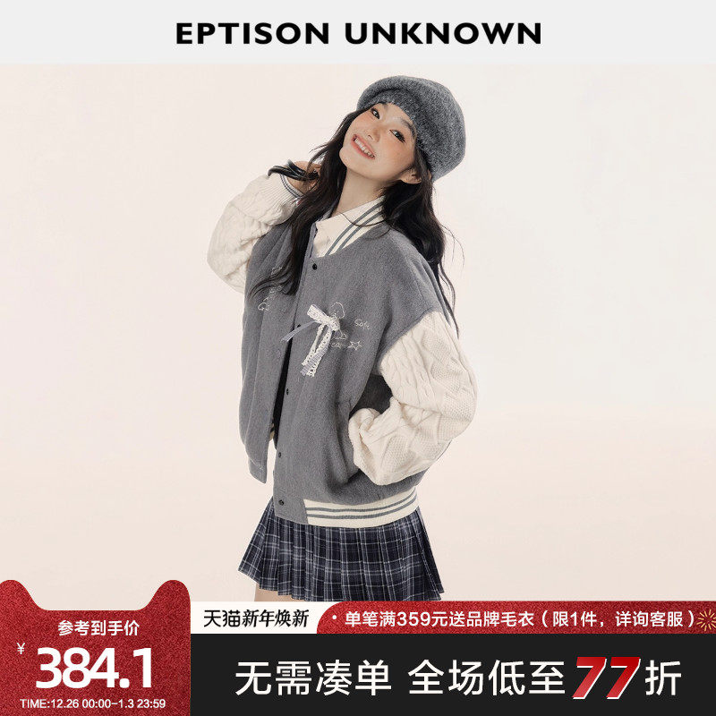 EPTISON夹棉外套女2025年冬新款复古小个子设计感短款毛呢棒球服