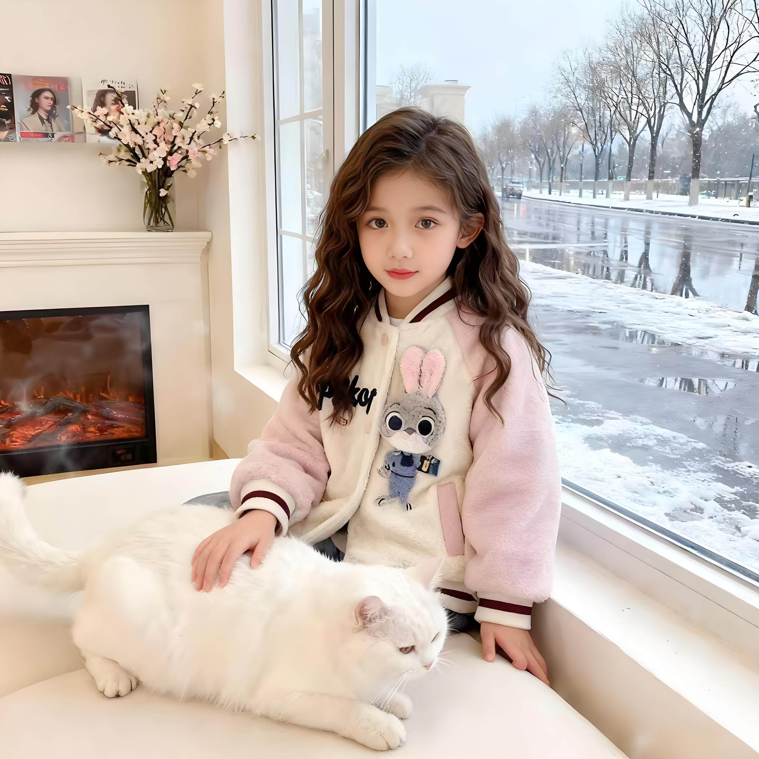 女童小兔警官毛呢加棉加厚棒球服外套可爱保暖夹克2025秋冬新款潮