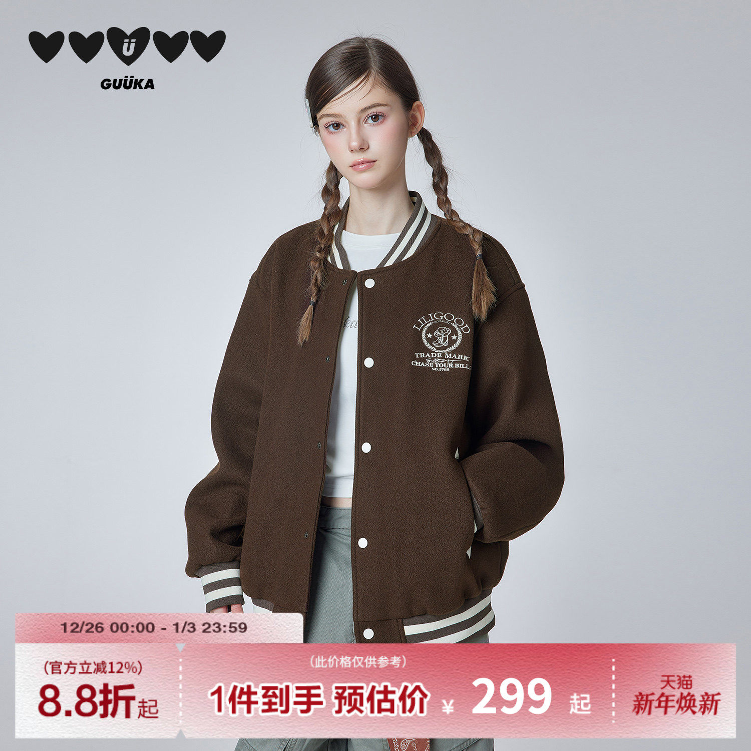 GUUKA潮牌毛呢棒球服夹克男生春季新款 字母刺绣正肩老钱风外套女