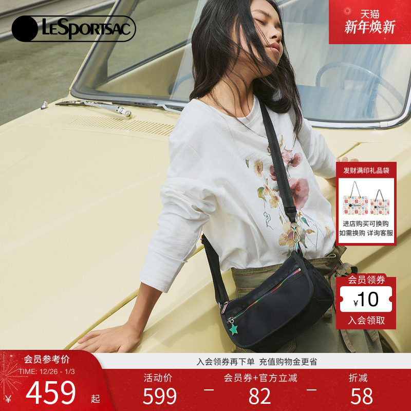 LeSportsac乐播诗25新款炫彩星河系列亮面黑色简约腋下包女斜挎包