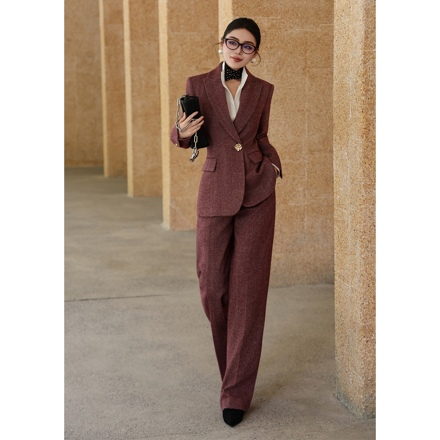 - 女士修身长裤套装