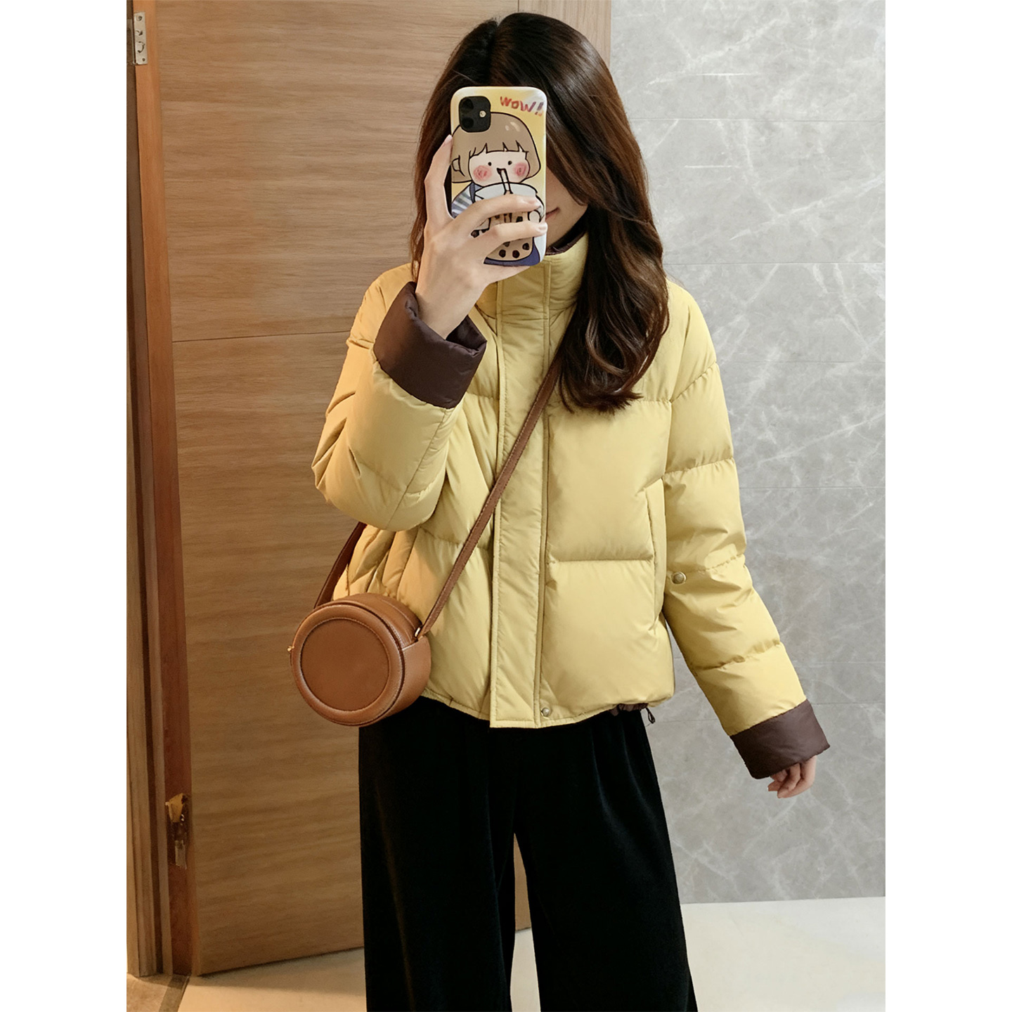 独特漂亮冬装一整套保暖短款面包服外套阔腿裤巨好看的两件套装女