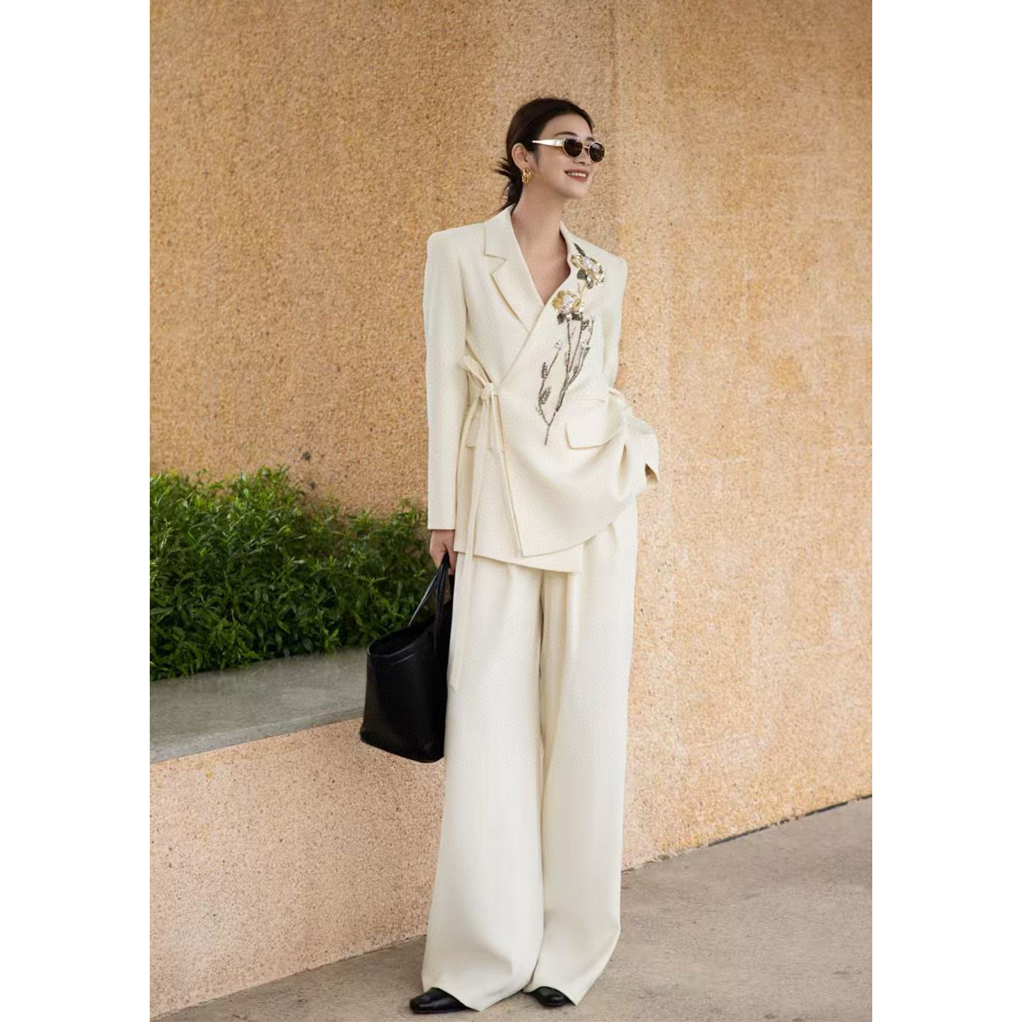 2025年秋季新款时尚气质女装设计感花瓣西装阔腿裤套装OL两件套潮