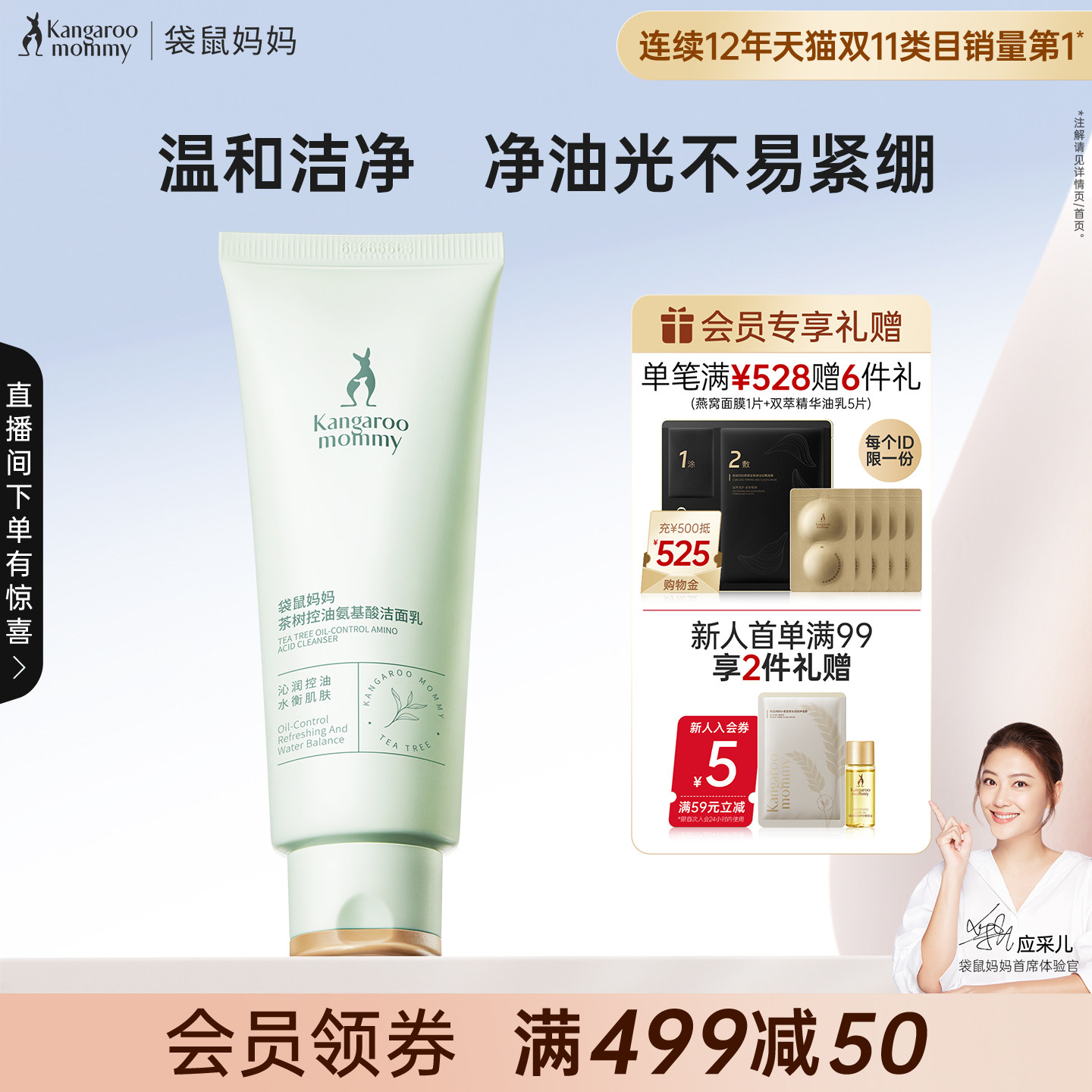 袋鼠妈妈洗面奶准孕妇洁面乳可用氨基酸补水准孕期保湿护肤品专用