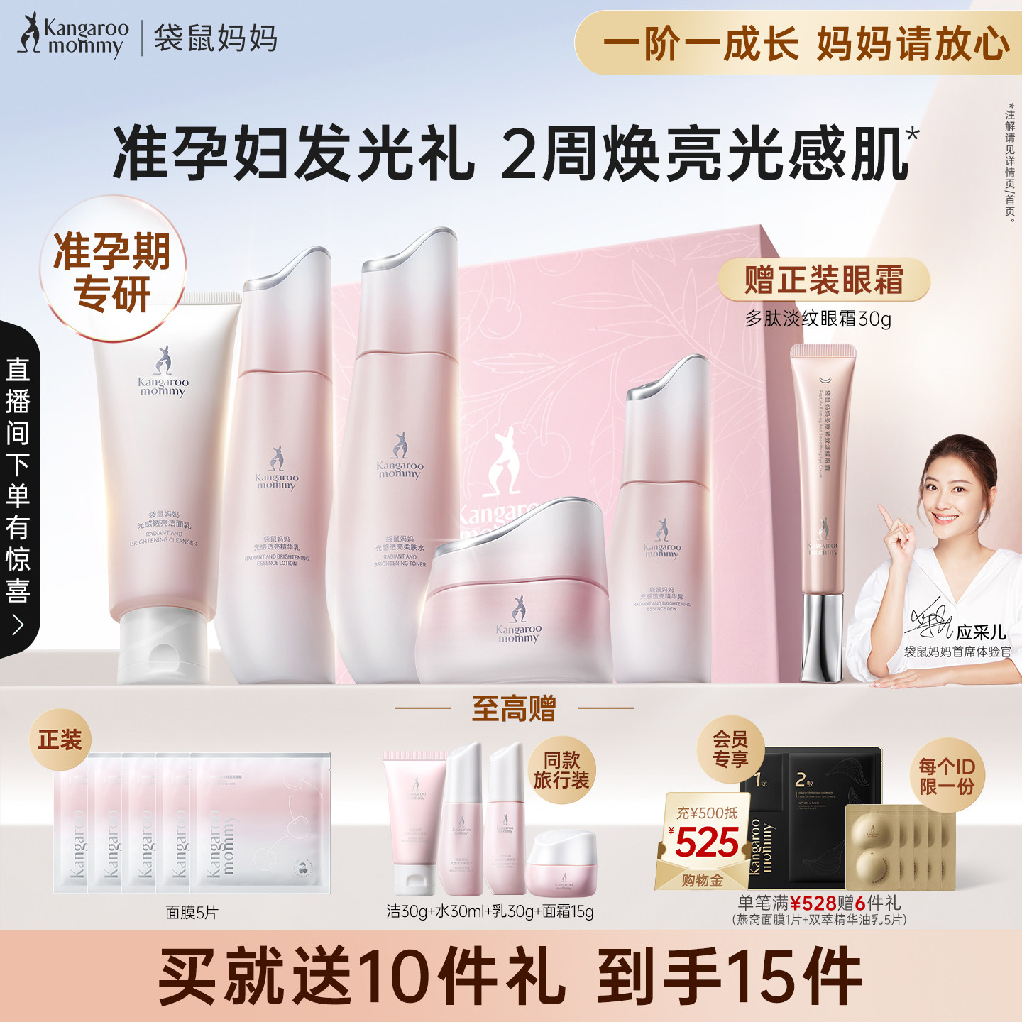 袋鼠妈妈光感透亮套装准孕妇补水抗氧提亮专用护肤品礼盒官方正品