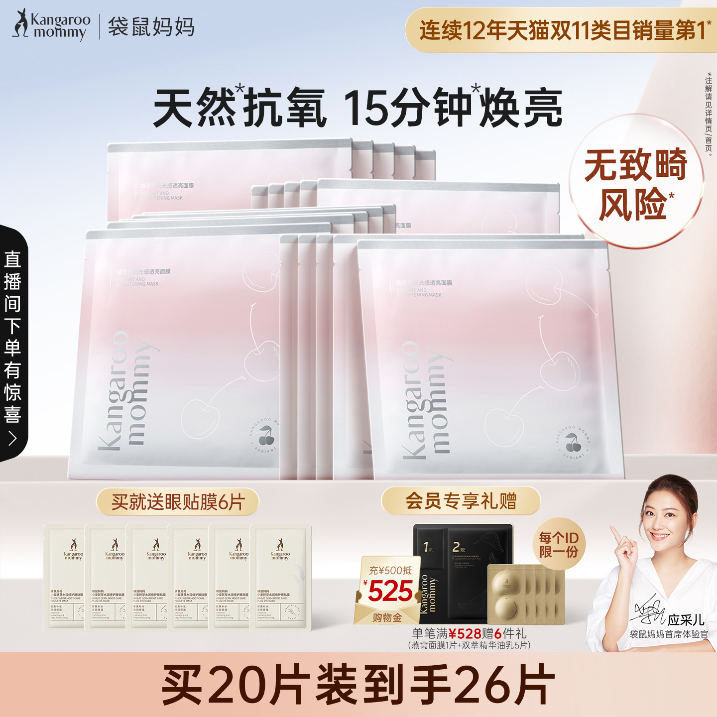 袋鼠妈妈光感透亮面膜准孕妇护肤品补水提亮专用抗糖抗氧面膜正品