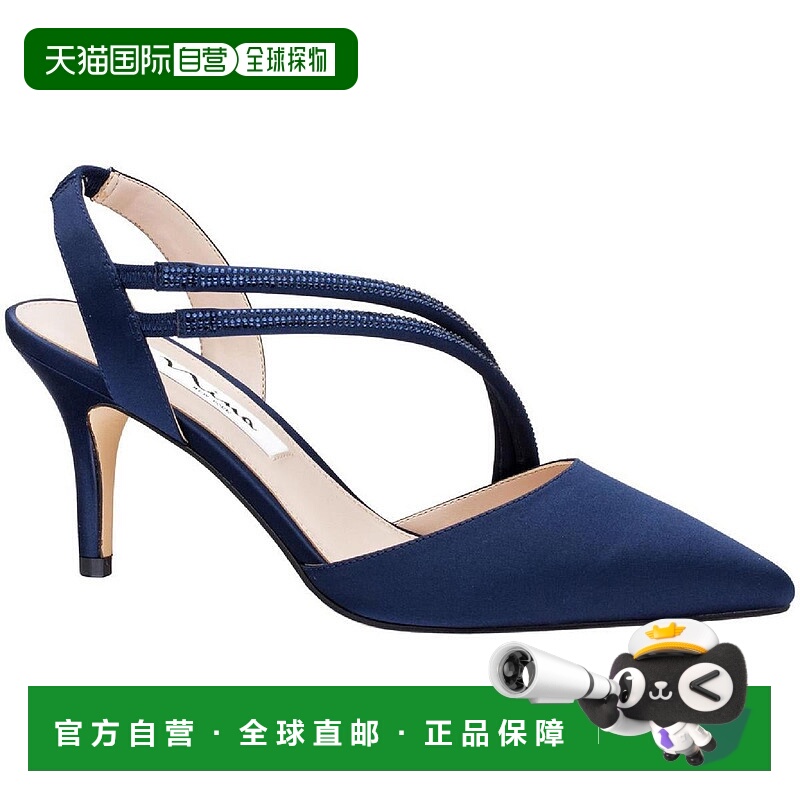 自营ninaTANSY女式金属亮片高跟鞋-海军蓝光泽缎面 美国奥莱直发