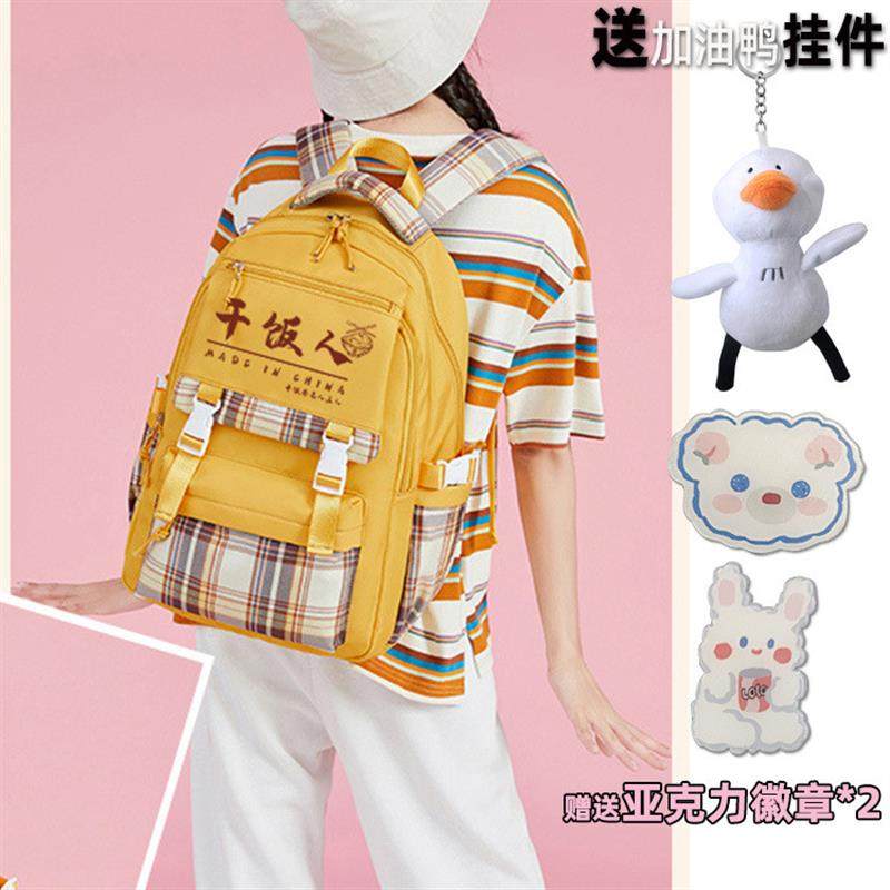 新款干饭人书包中学生女韩版高中森系日系双肩包少女初中生大学生