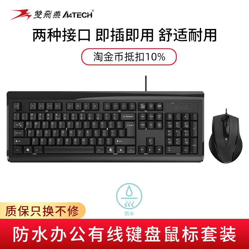 双飞燕有线键盘鼠标套装台式机USB笔记本办公家用游戏防水F1512