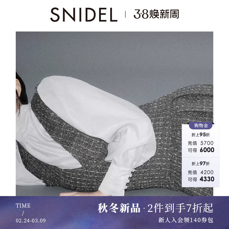 SNIDEL2025秋冬新品甜美泡泡袖蝴蝶结系带雪纺衬衫上衣SWFB255162