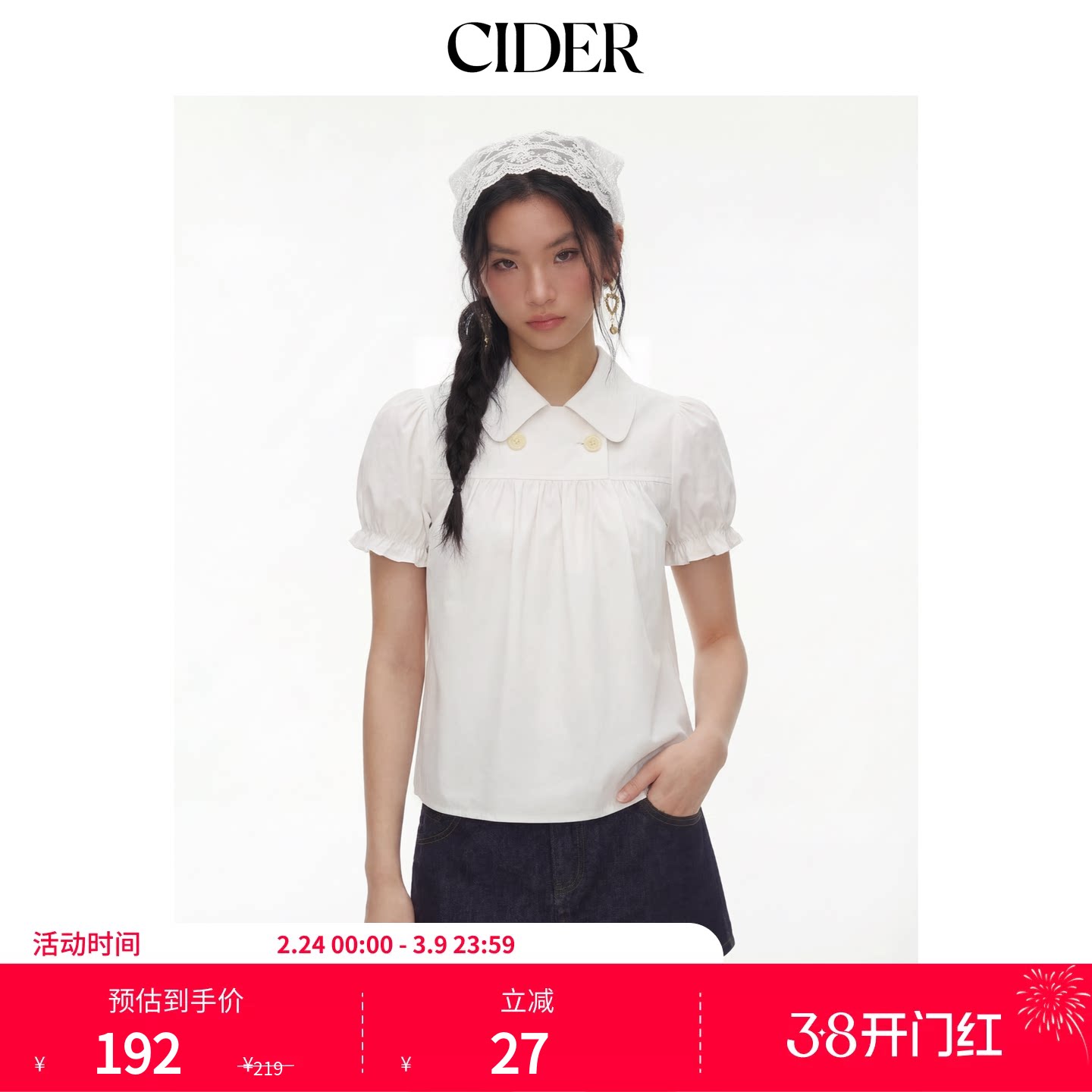 CIDER2026春季新品ootd棉混纺彼得潘翻领泡泡袖上衣套装115200888