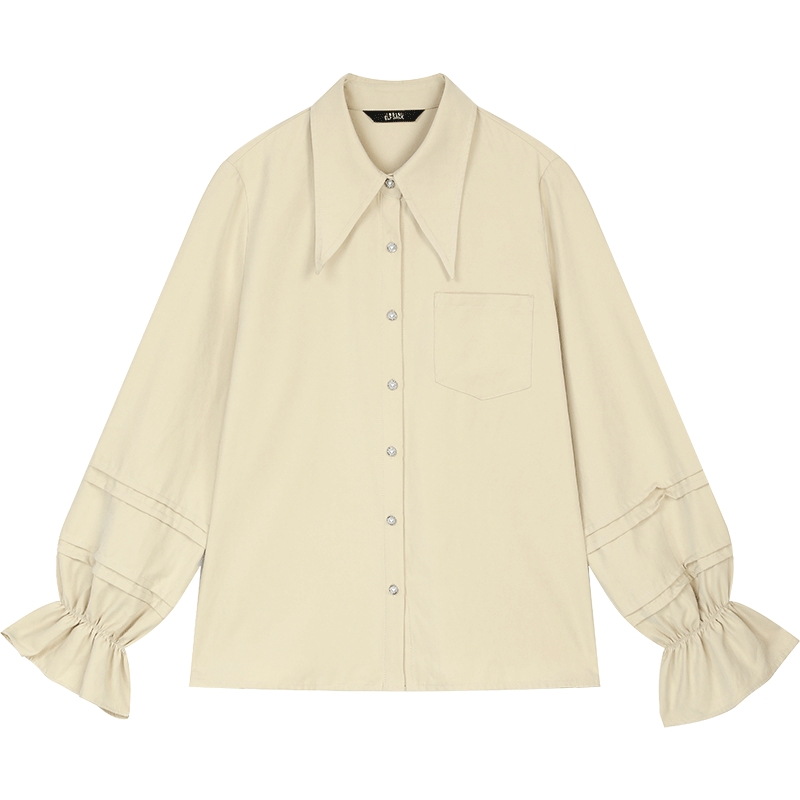妖精的口袋法式泡泡袖卡其色衬衫女2025年秋季新款宫廷风宽松上衣