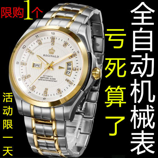【AU999花钉】罗西尼手表男钨钢系列时尚机械表100米防水夜光男表