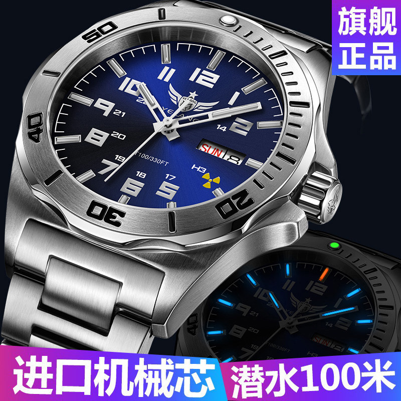 氚气手表进口机芯全自动机械表男表正品牌军风夜光防水手表V1019
