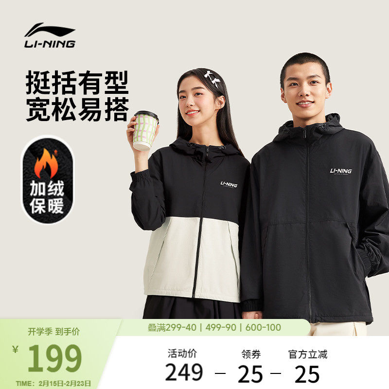 李宁外套男秋冬新款情侣梭织风衣加绒休闲潮流学院上衣运动夹克女