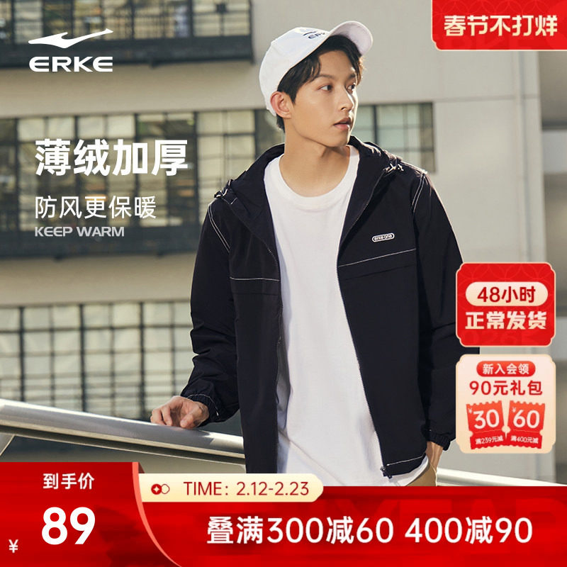 鸿星尔克外套男春秋男士运动加厚潮流防风衣男生连帽夹克男款上衣