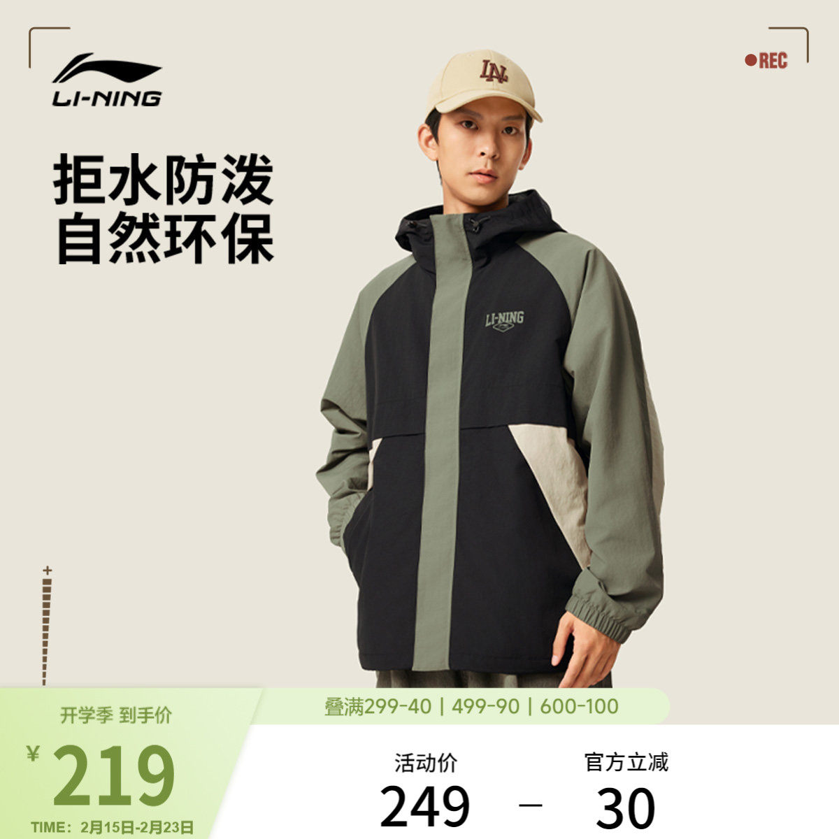 李宁外套 2026春季新品男子时尚潮流系列休闲连帽运动风衣AFDW415