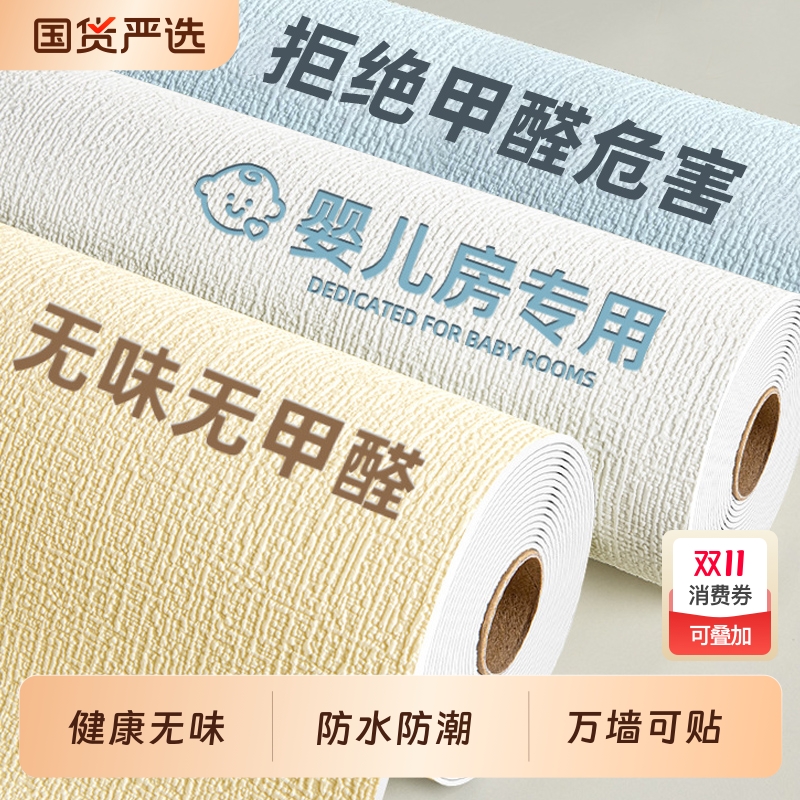 墙纸自粘防水防潮家用加厚卧室温馨贴纸纯白墙贴客厅背景翻新壁纸