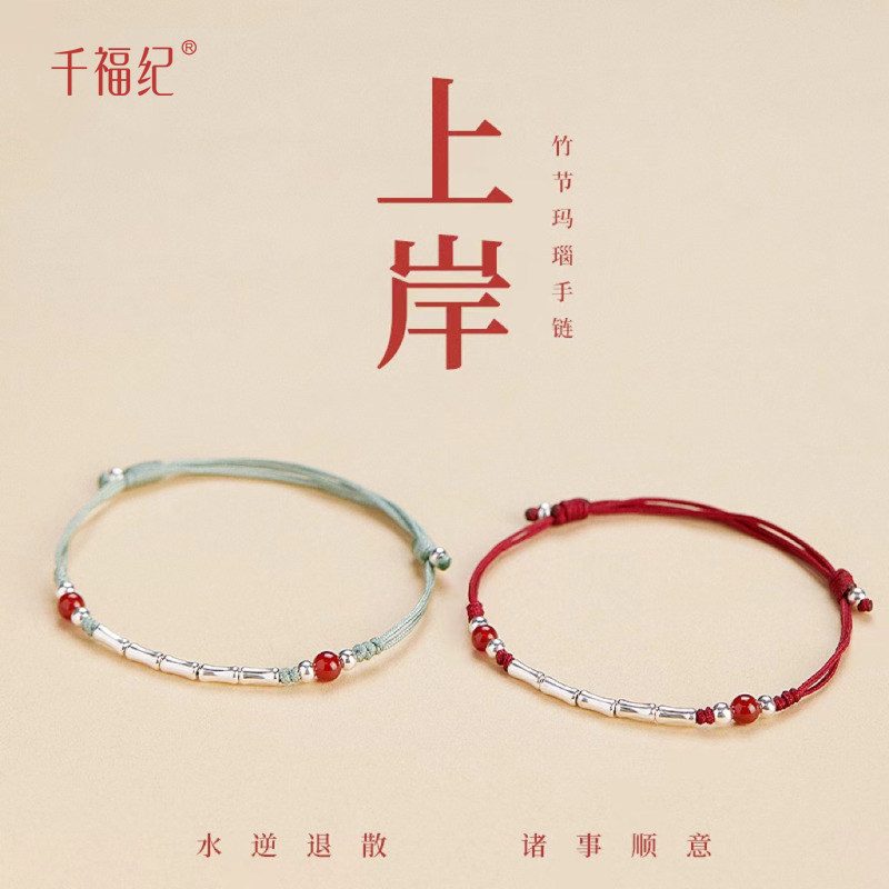 好运红绳手链女生银竹节上岸编织手绳男脚链女本命年考研礼物情侣