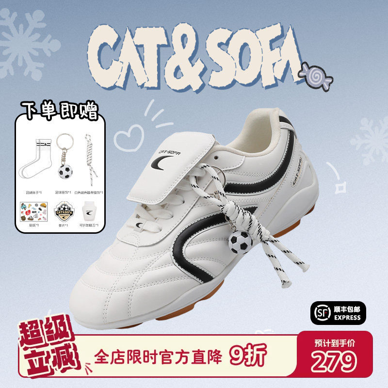 猫与沙发/白色足球鞋男女同款赛车鞋新款流浪鞋子运动休闲德训鞋