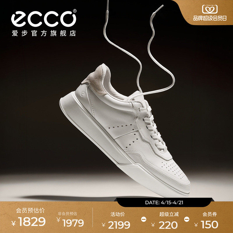 ECCO爱步小白鞋男 26新春夏复古时尚增高休闲板鞋 街头球鞋539814