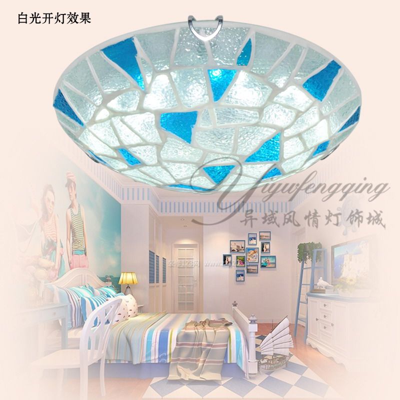 地中海风格卧室圆形吸顶灯 创意田园砖石晾衣阳台蒂凡尼灯具蓝色