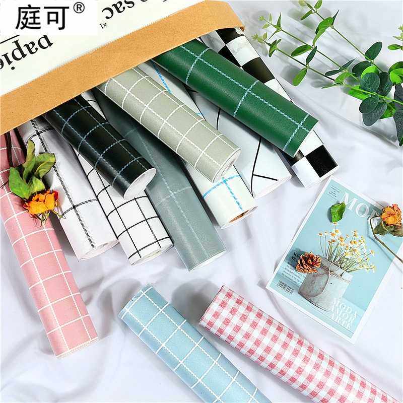 大女生寝室书桌翻新贴纸清新壁纸贴格子自墙纸贴自批发粉色防水小