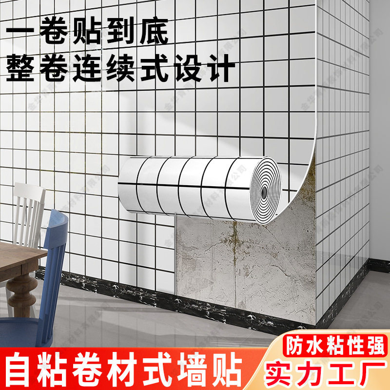 仿瓷砖防水防潮铝塑板黑白格护墙板自粘墙贴商用厨房墙面墙纸贴纸