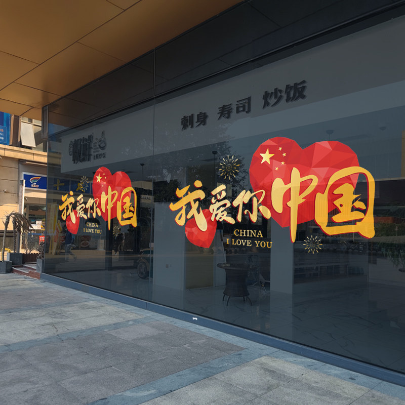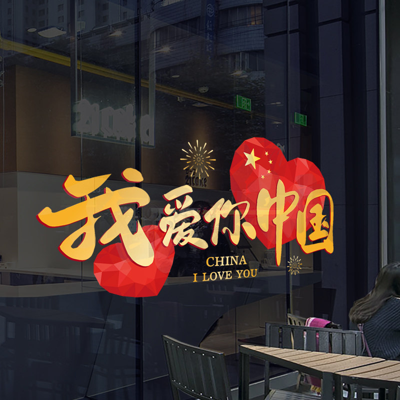 国庆节日贴纸店铺玻璃门橱窗装饰静电无胶我爱你中国布置墙纸贴画