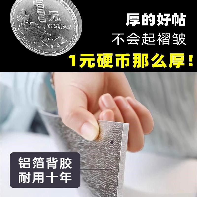 厨房防油贴纸防火耐高温橱柜自粘墙纸防水防潮铝箔纸加厚墙面立体