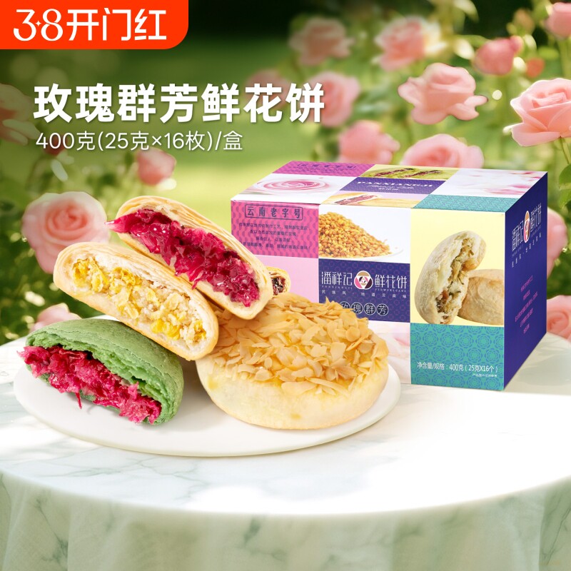 鲜花饼云南特产玫瑰花饼正糕点宗零食休闲早餐年货送礼官方旗舰店