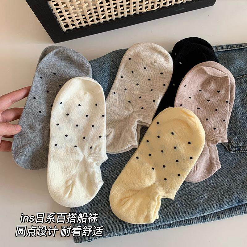 船袜女款春秋纯棉不掉跟防滑2025新款爆款波点纯棉防臭短袜隐形袜