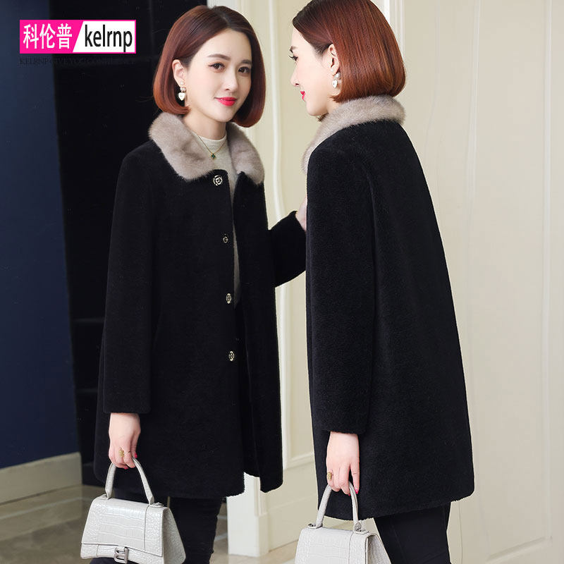 皮草外套女时尚新款冬羊剪绒大衣水貂中长款颗粒绒海宁狐狸毛女装