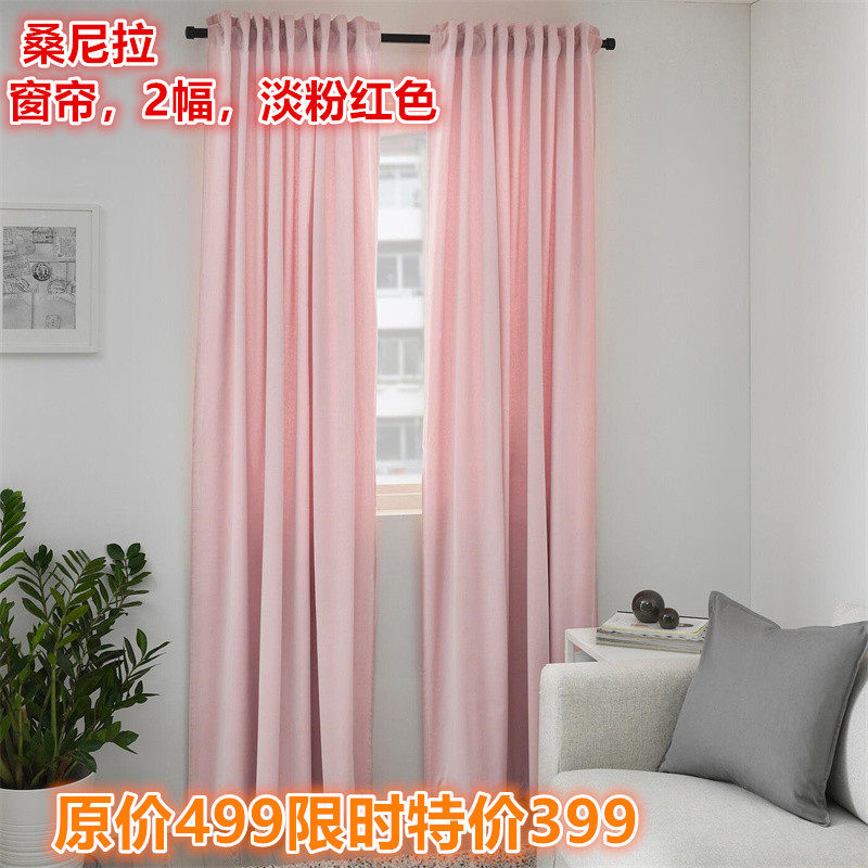 IKEA宜家 桑尼拉 窗帘2幅棉绒材质客厅卧室遮光装饰窗帘淡粉红色