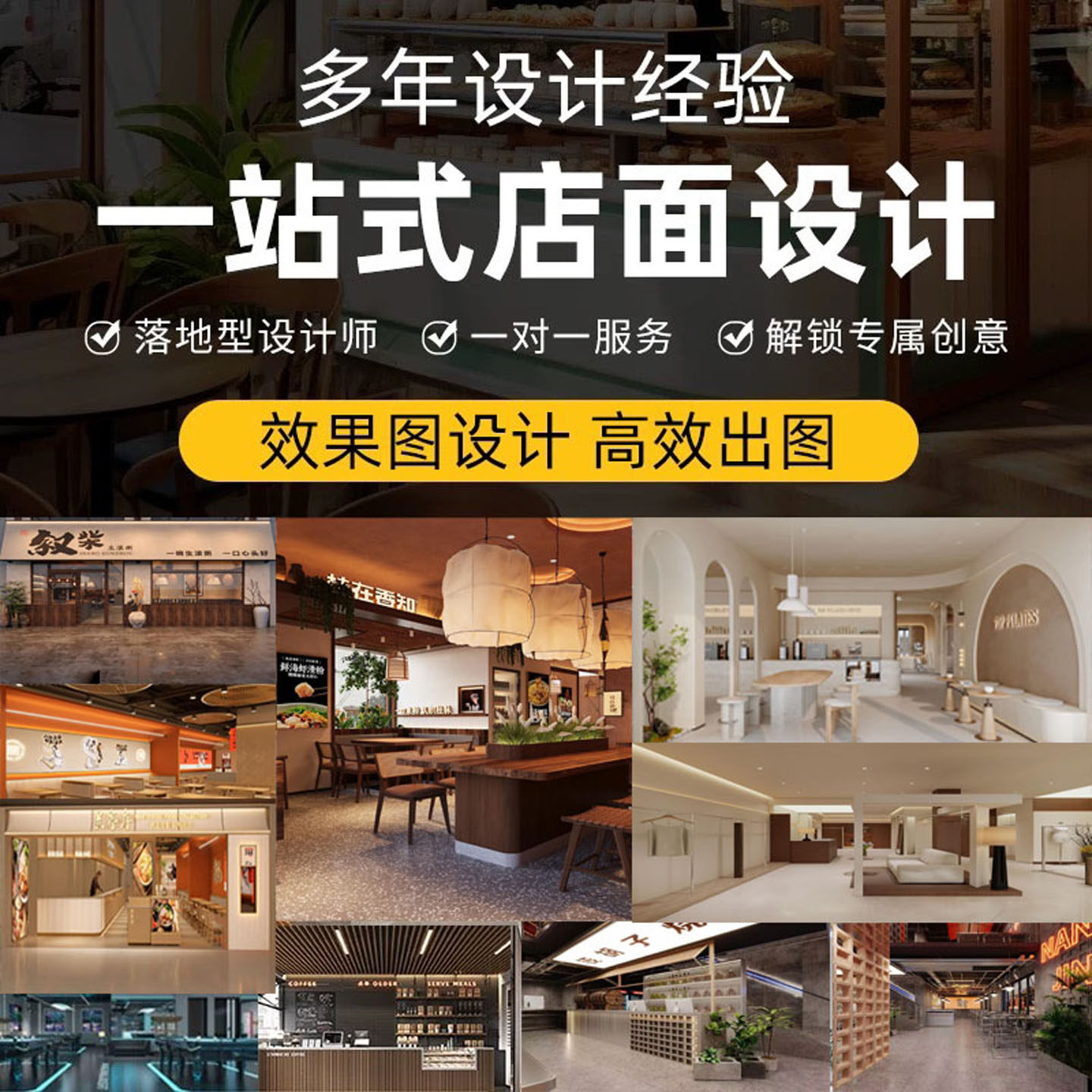 店面门头装修设计效果图制作店铺装修餐饮服装酒店美容院工装室内