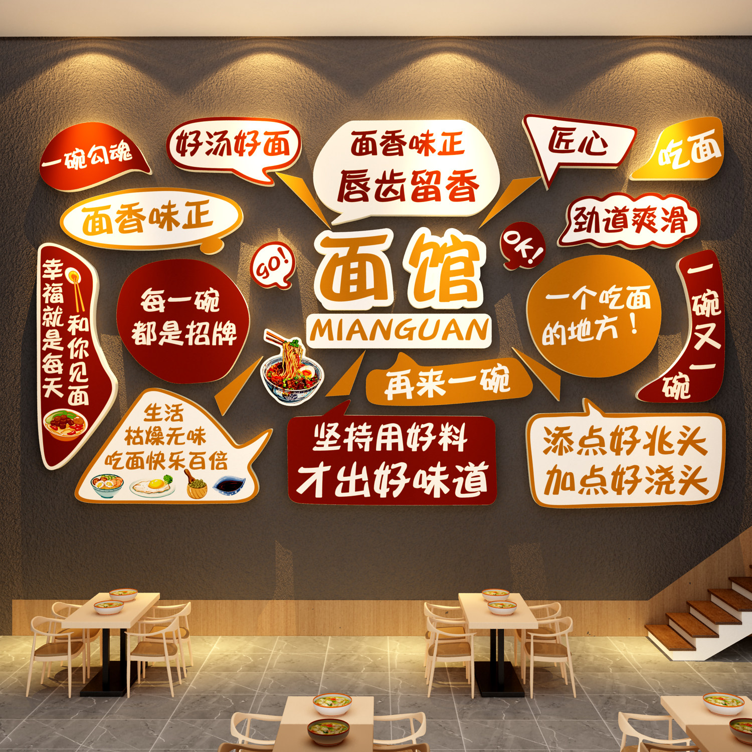 网红面馆墙面装饰创意贴打卡形象店铺品氛围布置装修广告壁纸挂画