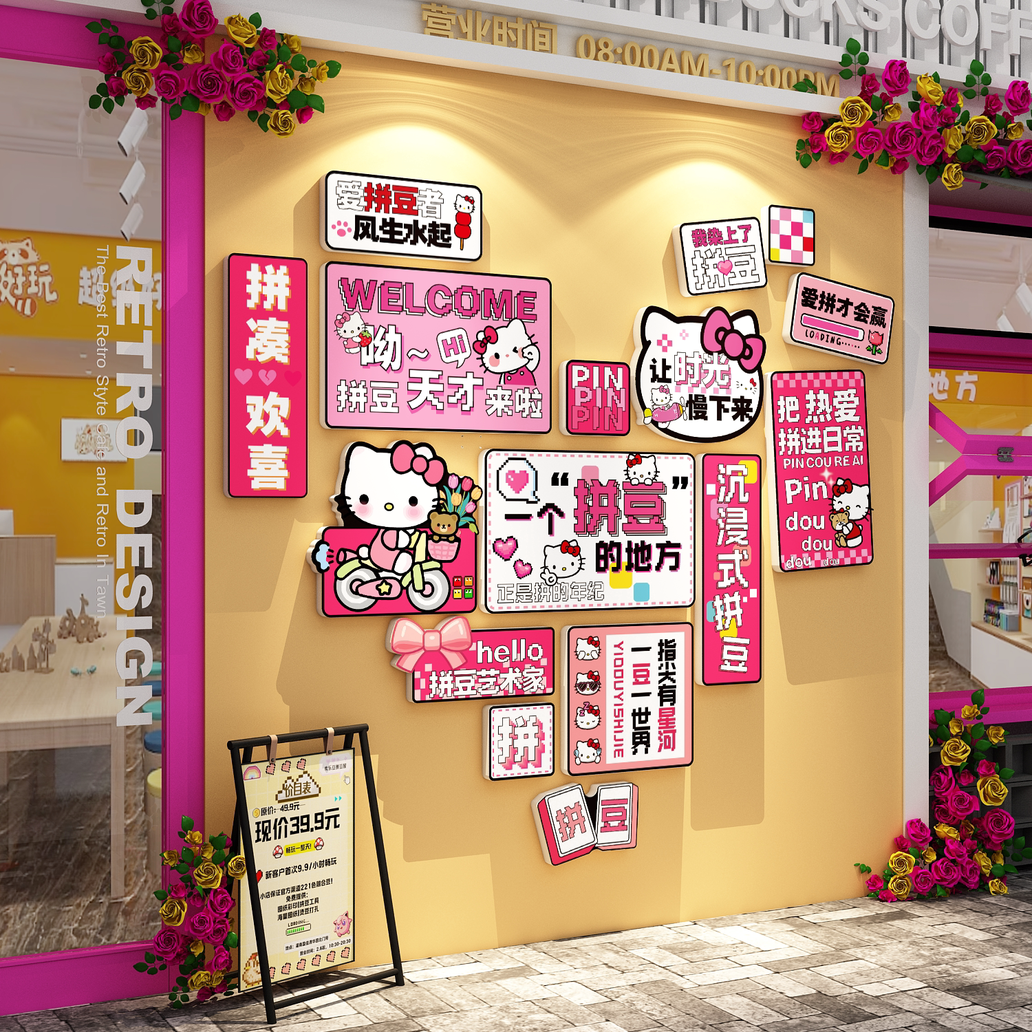 手工手作拼豆店铺墙面装饰画宣传海报广告牌装修网红打卡背景贴纸