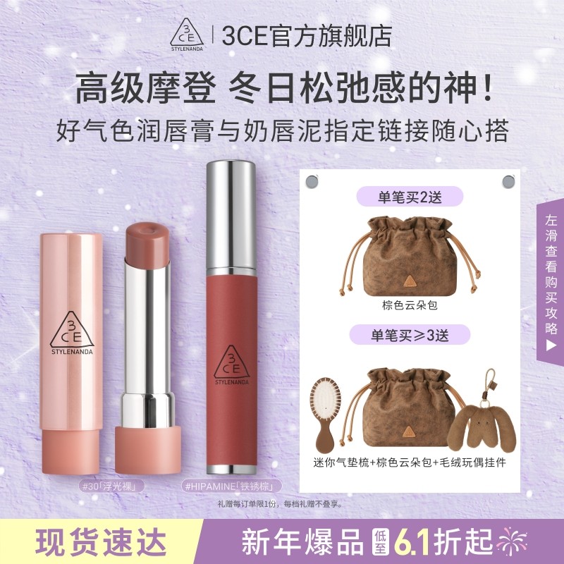 【彩妆礼物】3CE好气色润唇膏 变色裸色镜面唇釉口红滋润礼物