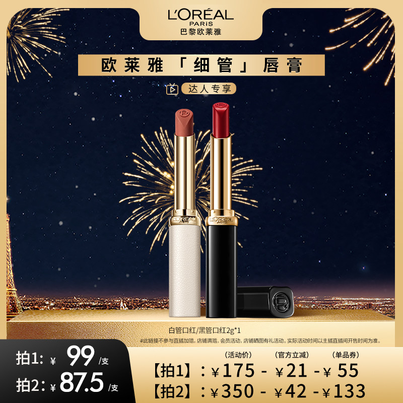 【达人专享】欧莱雅白管口红199冷美人哑光197黑管615唇膏官方O