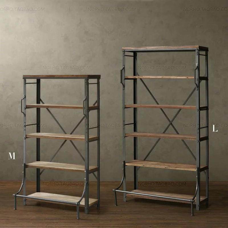 loft美式厨房铁艺置物架实木复古书架落地书柜陈列架北欧多层架