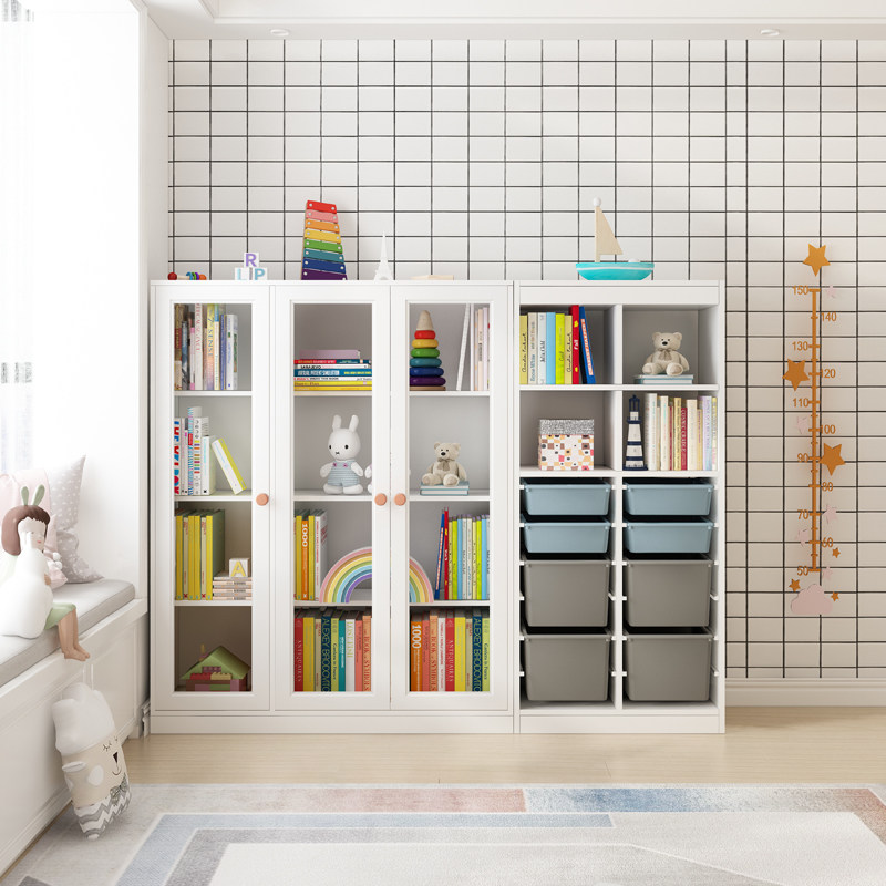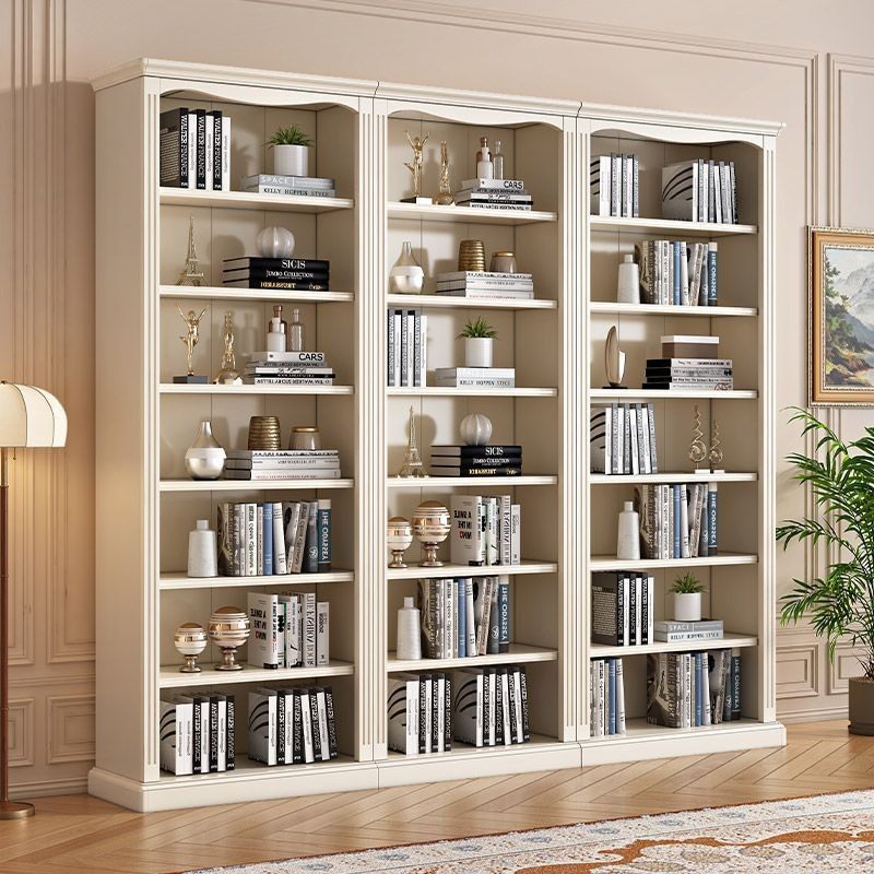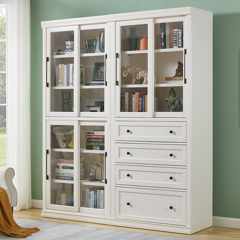 实木书柜带门玻璃门美式书架置物架白色落地橱儿童防尘储物柜整墙