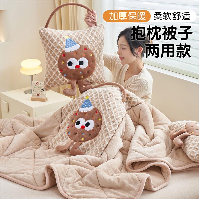加厚冬季抱枕被子两用午睡枕头被汽车载小靠枕办公室空调被二合一