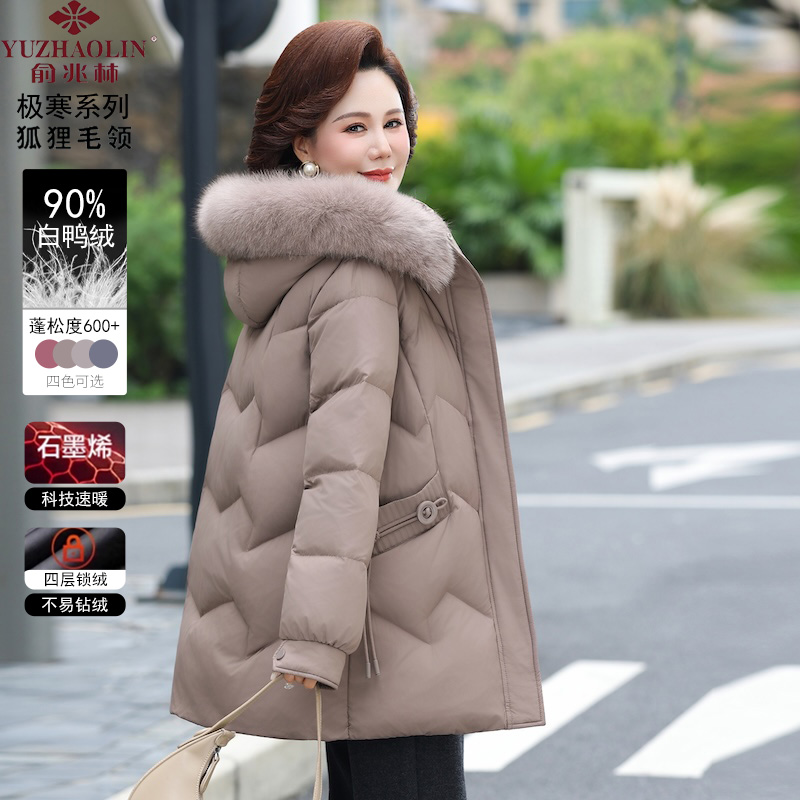 洋气妈妈羽绒服中长款冬季保暖时尚2025新款中年女装白鸭绒袄连帽