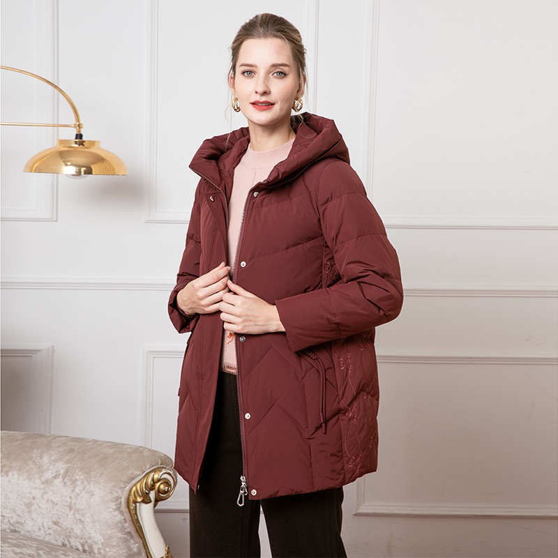 雪中飞2025冬新款女士中长款羽绒服连帽气质妈妈款外套收腰保暖