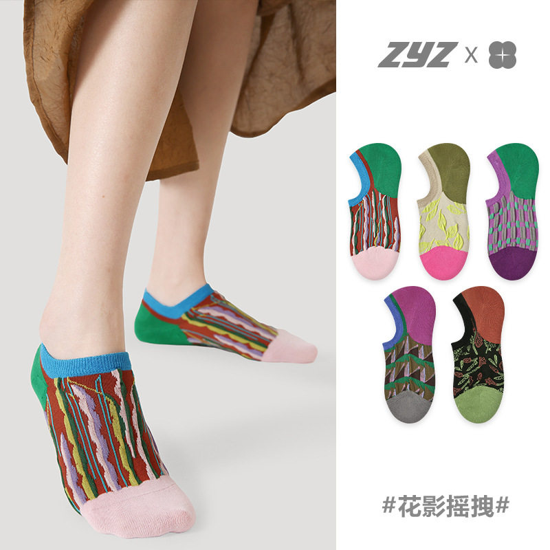 文艺复兴袜子女花卉少女短袜春夏季薄款棉袜防滑不掉脚隐形船袜潮
