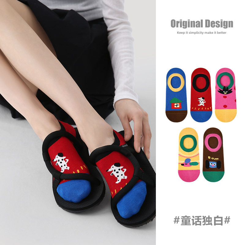 R5045成人女袜春夏新款卡通童话独白透气隐形袜棉薄款网眼袜子女