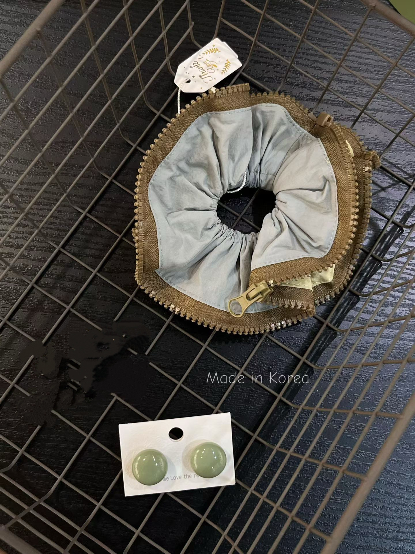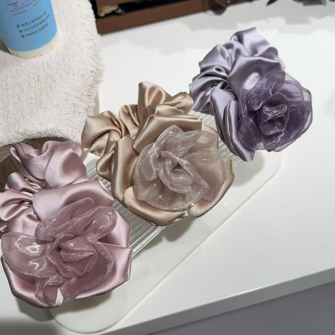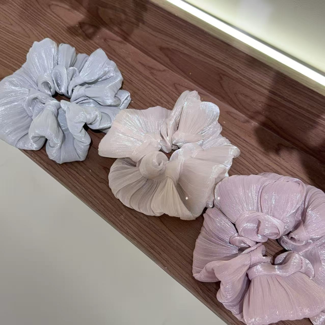 韩国东大门新款复古双层气质大肠发圈韩系通勤灰蓝色高级小众发饰