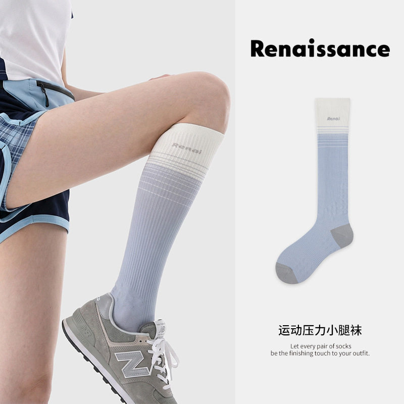 Renaissance微压薄款瑜伽运动压力袜跑步跳绳健身小腿专业长筒袜