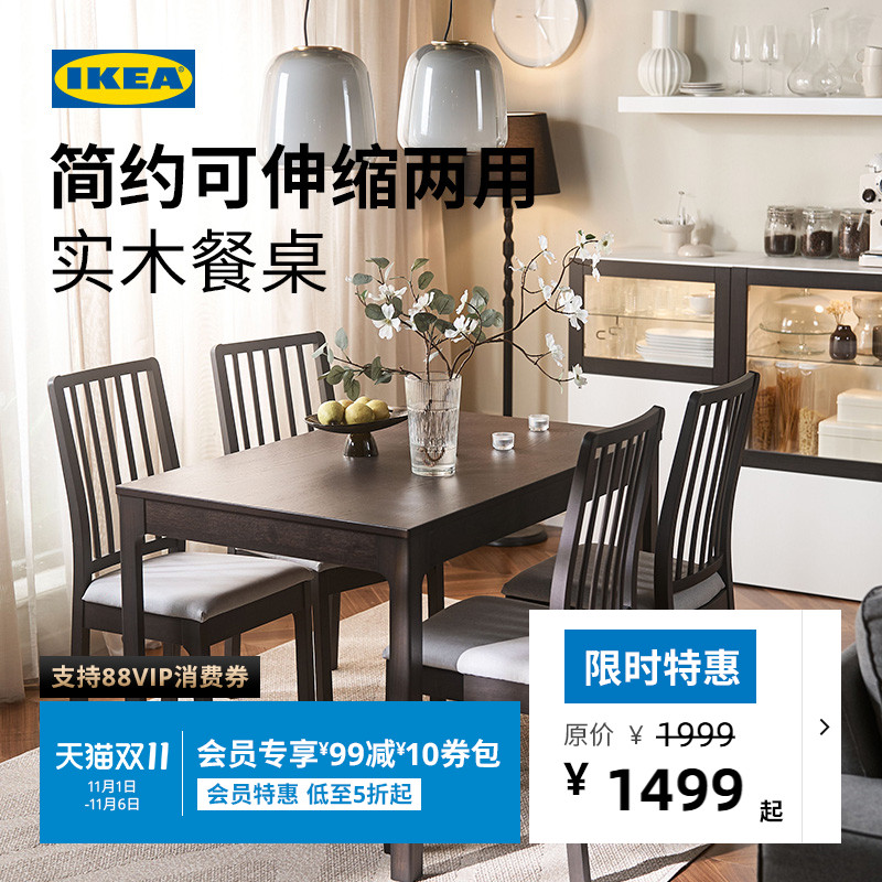 IKEA宜家EKEDALEN伊克多兰餐厅可伸缩餐桌吃饭桌子家用饭桌
